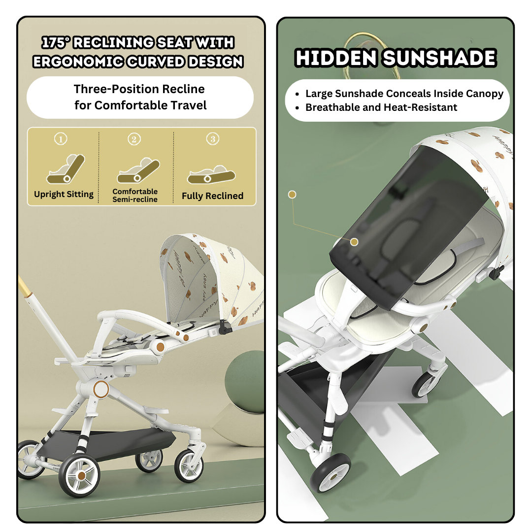 🌞 Sunshade: Large sunshade protects from sunlight; removable guardrail adds extra protection.