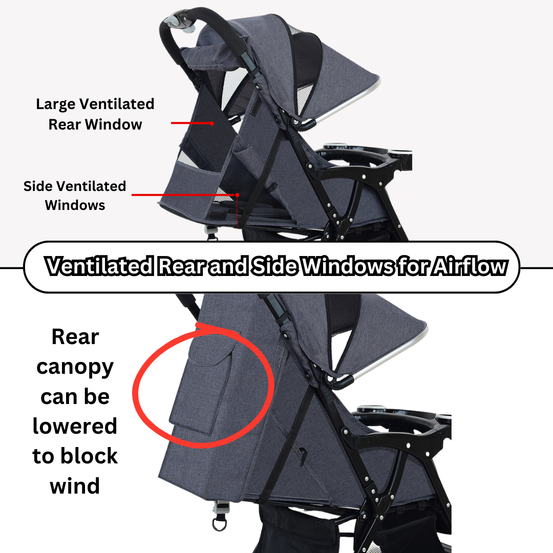 💨 Ventilation and Canopy: Enjoy airflow through the ventilated rear and side windows, and lower the rear canopy to block wind.