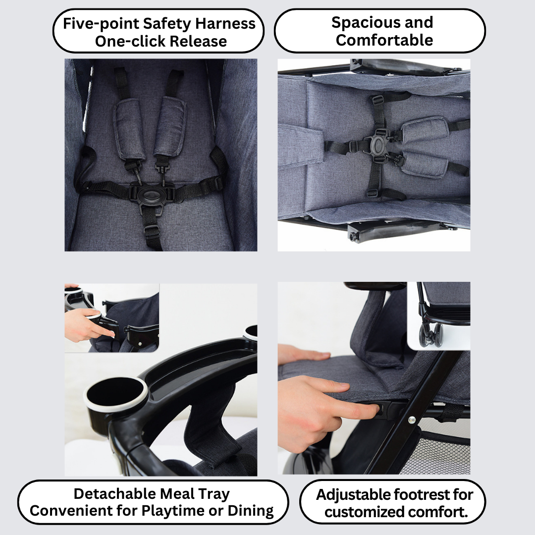 👣Adjustable Footrest: Tailor the stroller to your child’s comfort with the adjustable footrest.