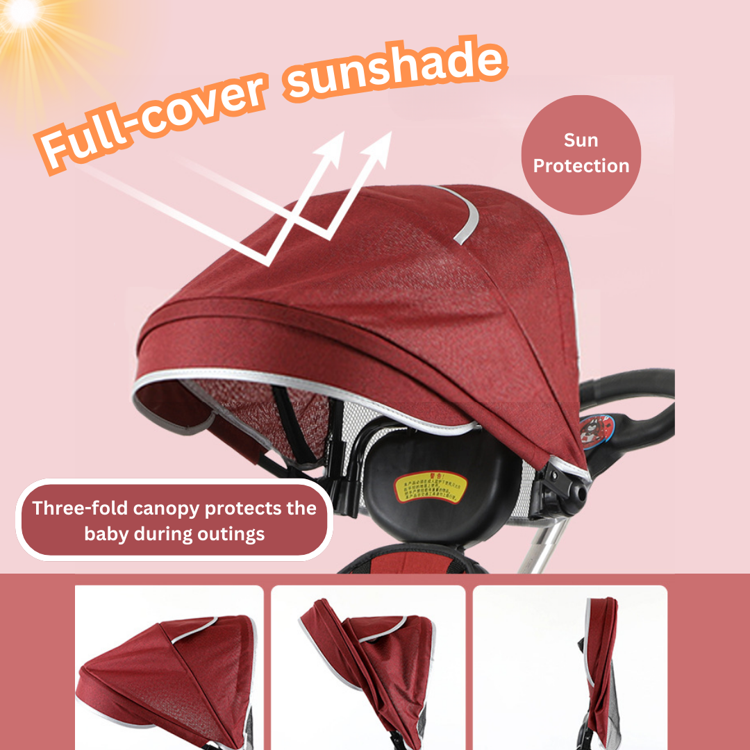 ☂️ Full Cover Sunshade Protection: Equipped with a 3-fold canopy to shield your little one during outdoor adventures.
