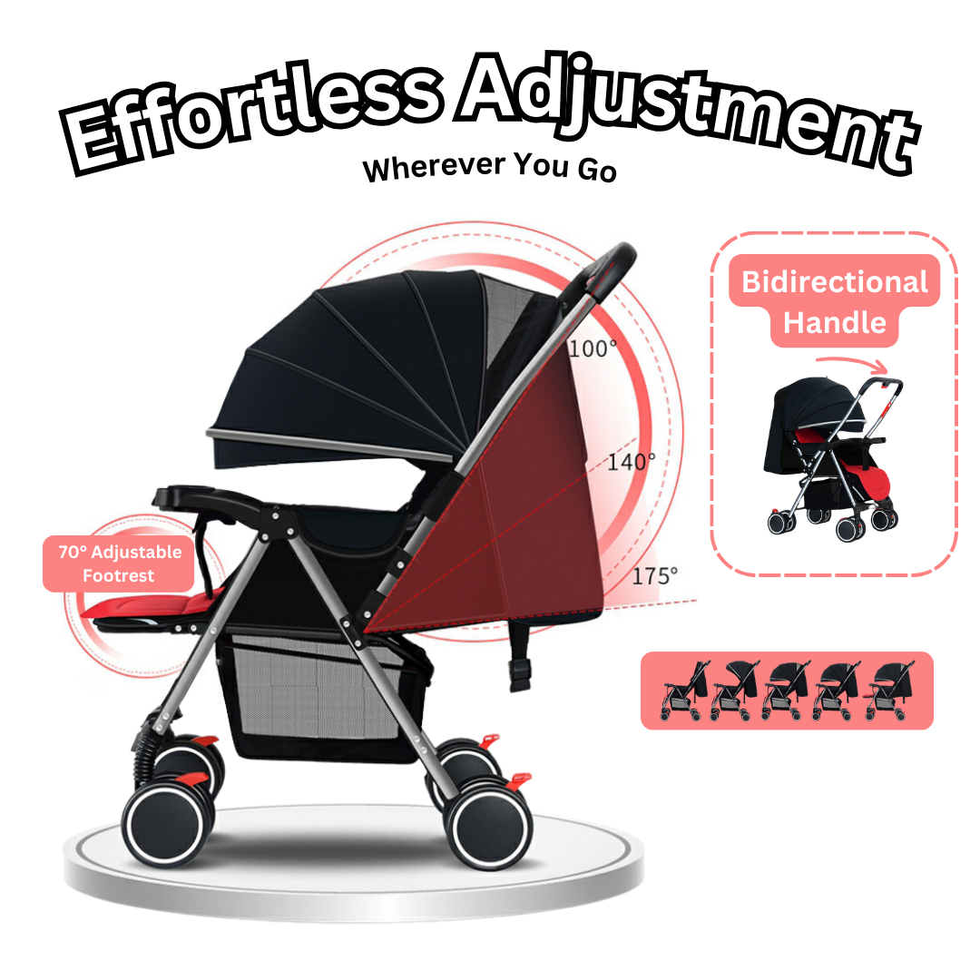 🔄 Bidirectional Pushing: Effortlessly switch directions with 100°, 140°, and 175° adjustments for a versatile stroll.