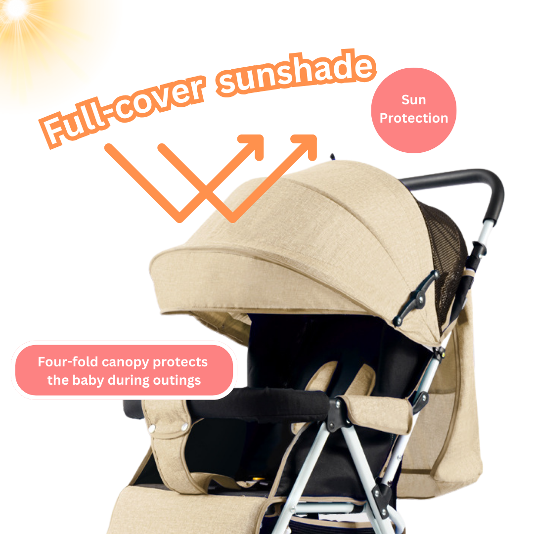☀️ Sunshade Protection: Shield your baby from the sun with a full-cover sunshade and 3-fold canopy.