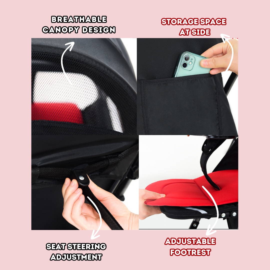 🕊️ Feather-Light Design: Weighing only 4.4 kg, this sturdy stroller supports up to 15kg.